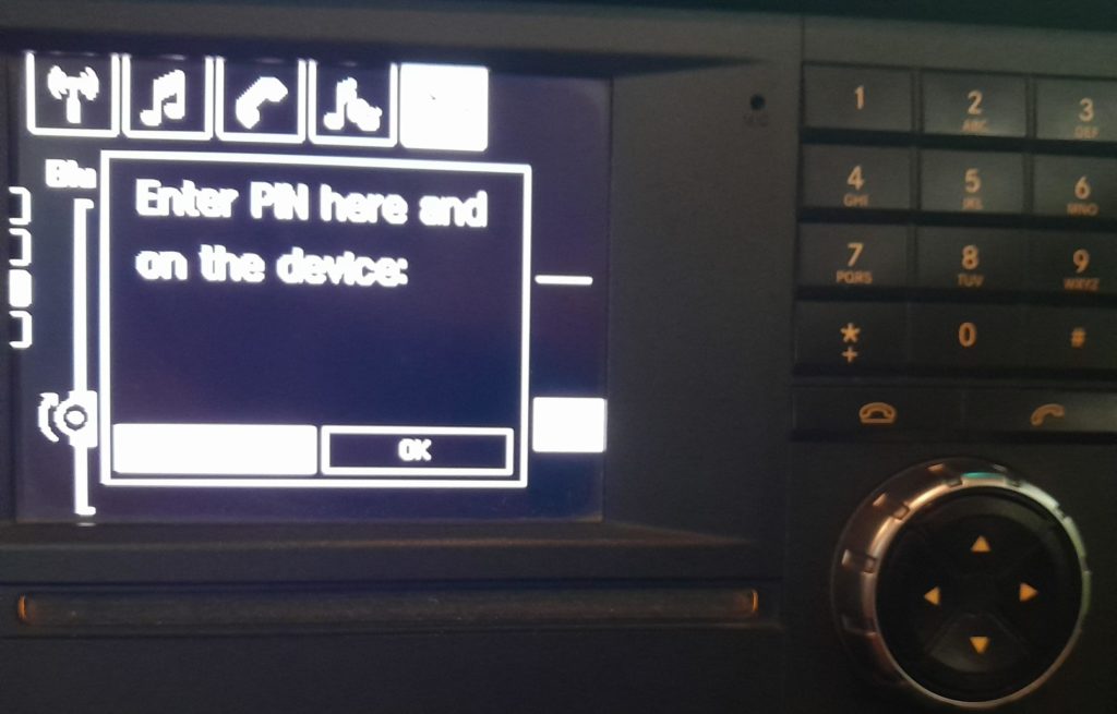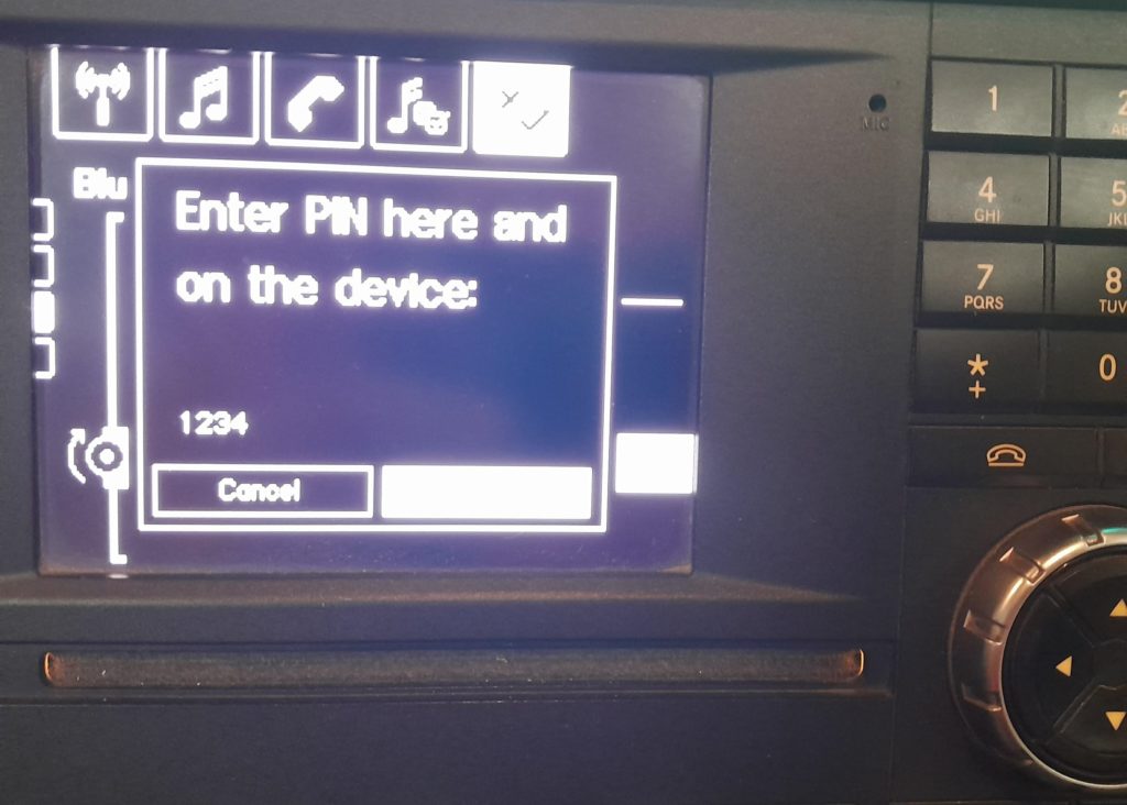 - Once you have selected MB Bluetooth, you will then be prompted to enter the PIN you set up on the radio.